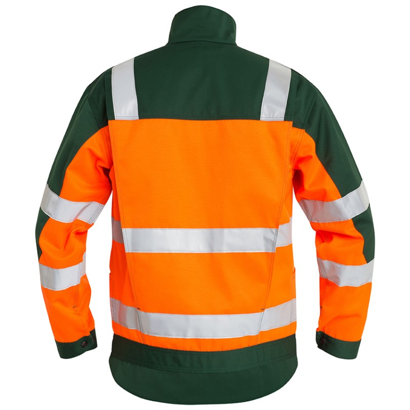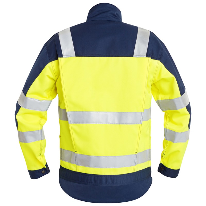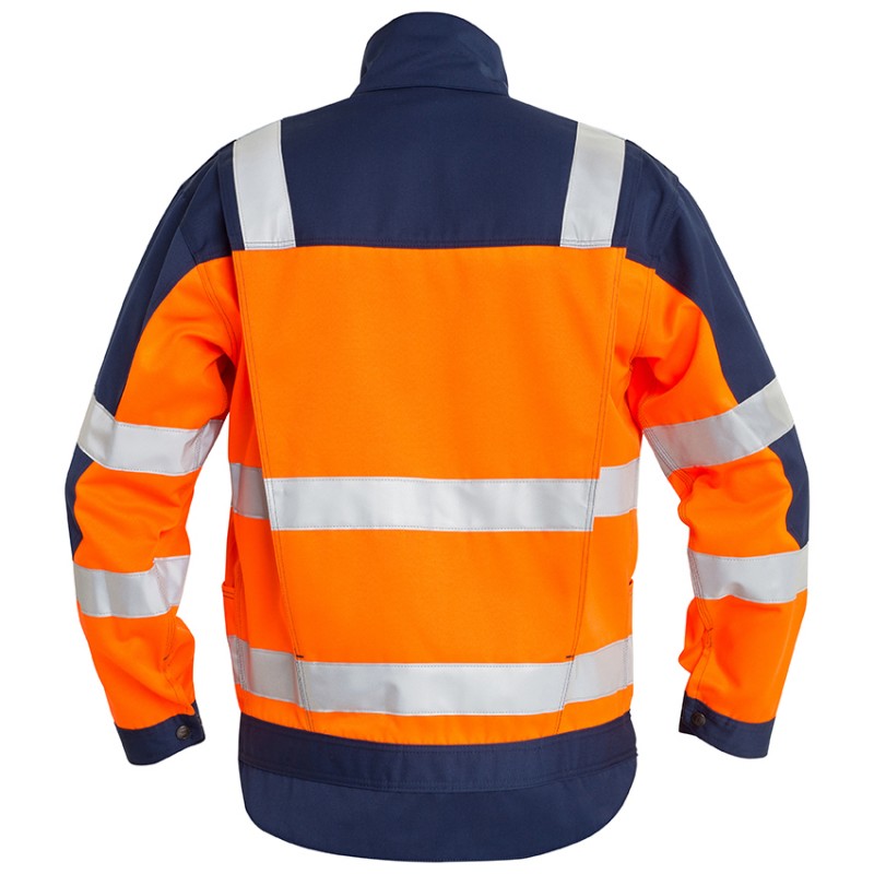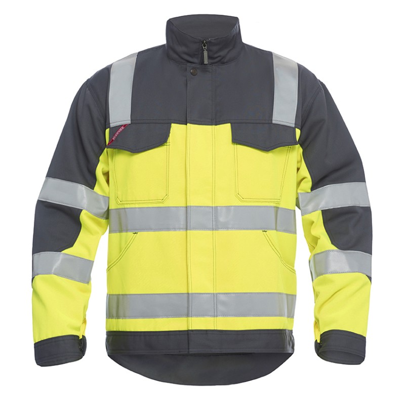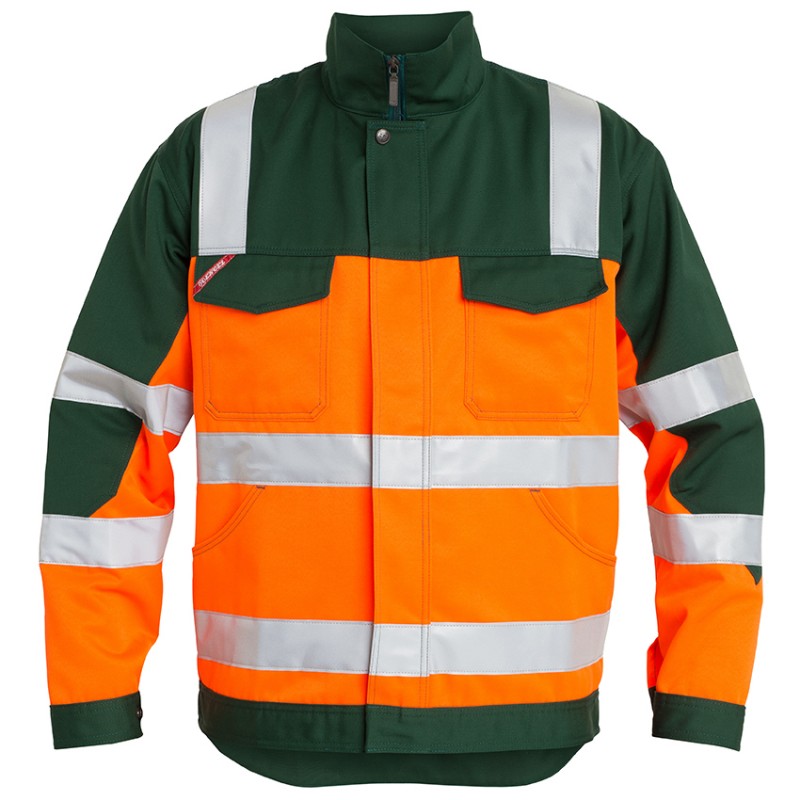 Clase 2 Chaqueta más larga en la espalda. Numerosos bolsillos, puños ajustables. Acabado resdistente al agua, aceites y suciedad.