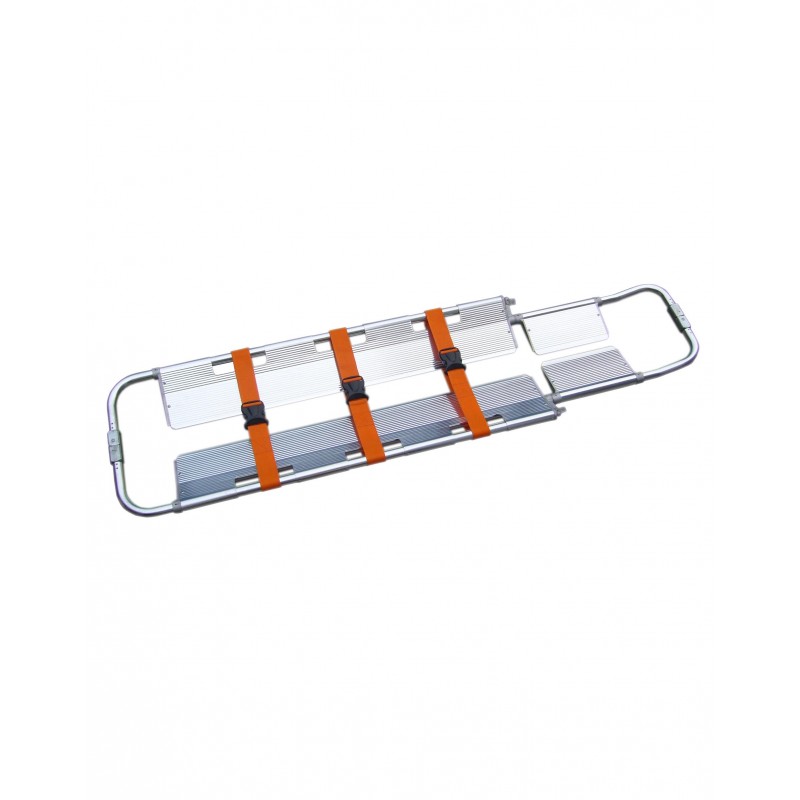 En aluminio anodizado de alta resistencia. Se puede plegar o alargar longitudinalmente. Fácil de bloquear y desbloquear. Comodidad para colocar al paciente.