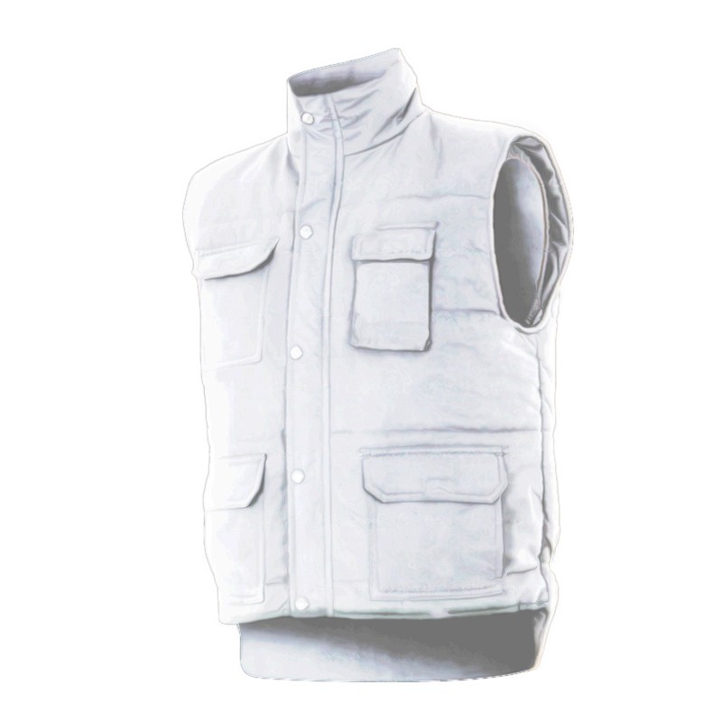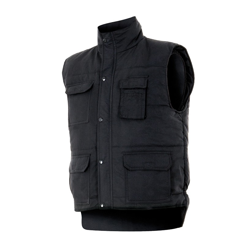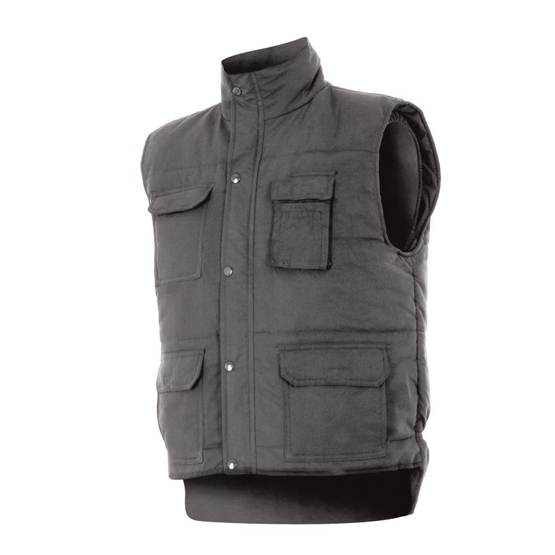 El chaleco multibolsillos acolchado es una opción muy práctica y confortable en ropa laboral. Dispone de 4 bolsillos exteriores y 1 bolsillo interior, ideal para guardar pequeños materiales y objetos. Su fabricación en poliéster con acolchado resguarda del frío, además de ser un eficaz cortavientos.
