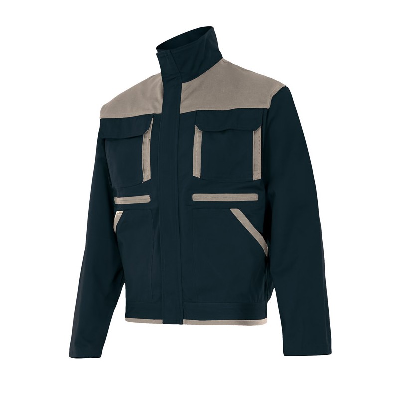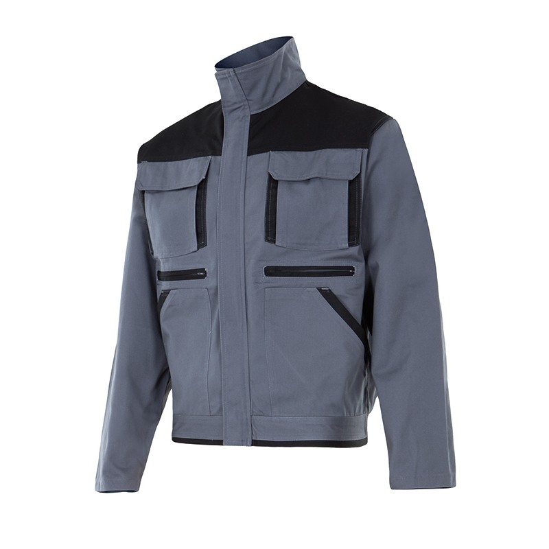 Cierre central con cremallera oculta con tapeta. Numerosos funcionales bolsillos. Saqrga 65% poliester 35% algodón 275 gr/m