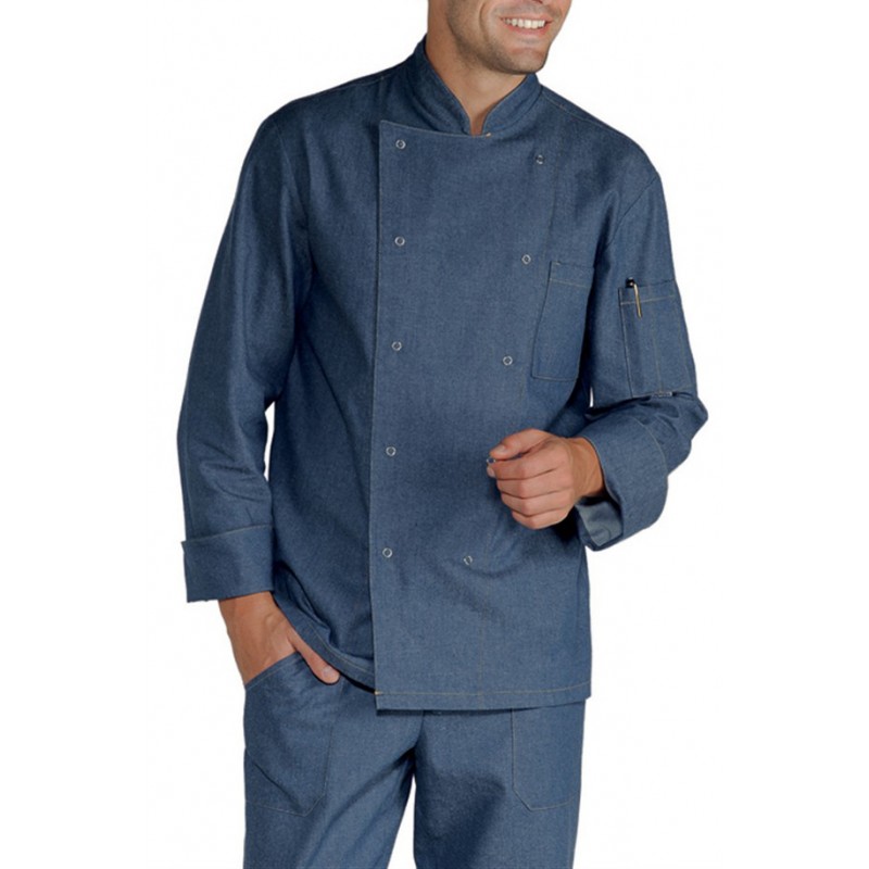 Chaqueta confeccionada en tejido 100% algodón JEANS. Un toque moderno para el/la profesional de la cocina.